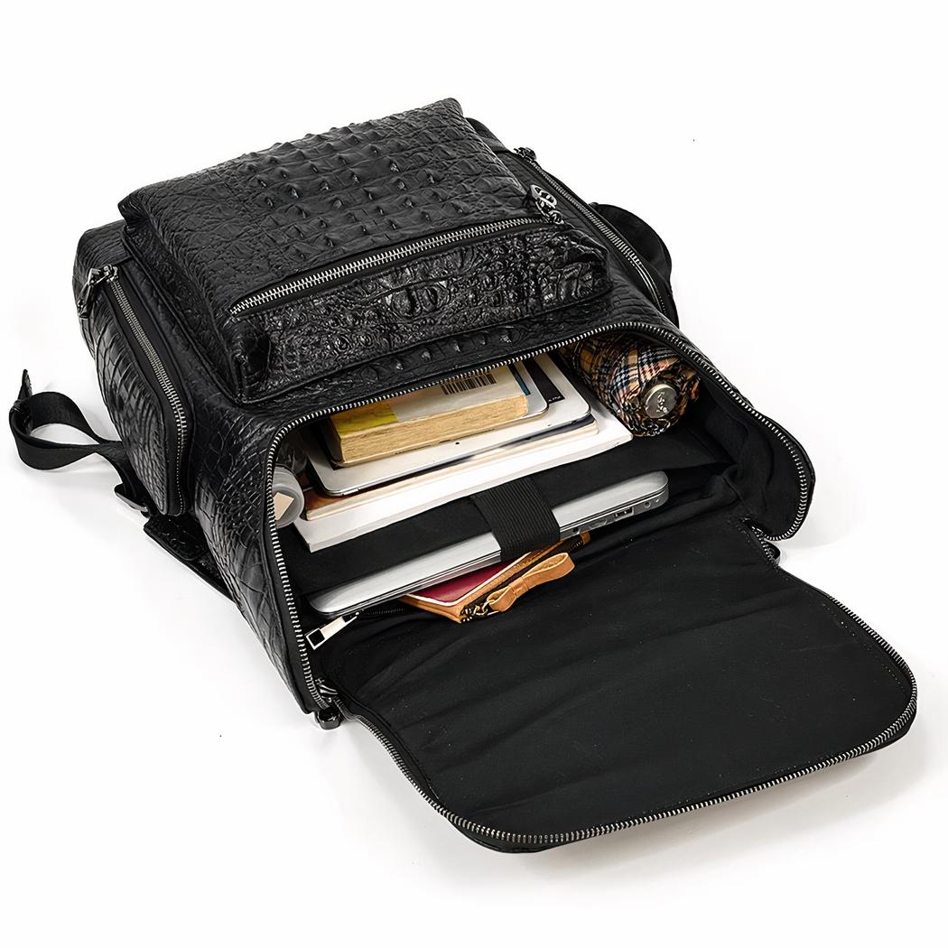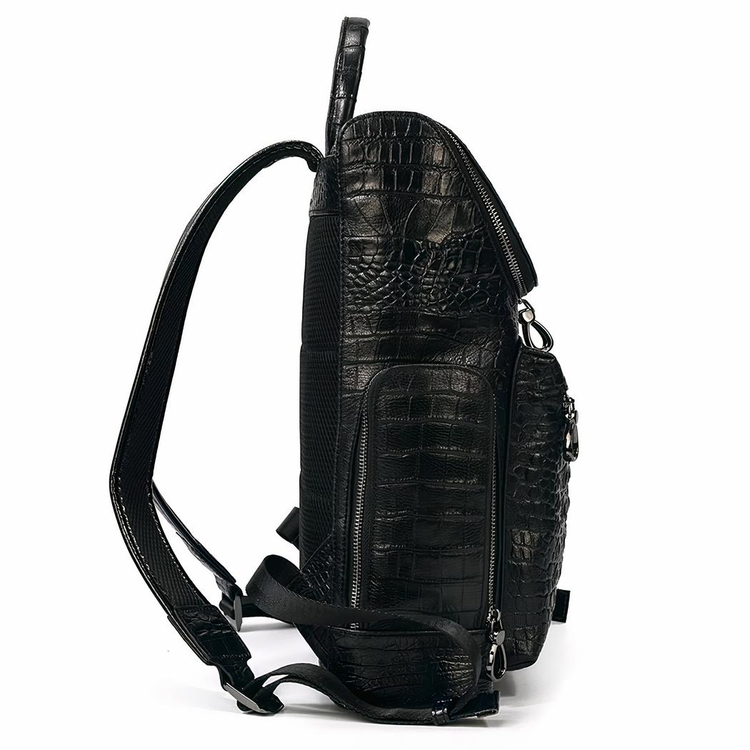 Esta mochila de cuero es una pieza atemporal y elegante que se adaptará a cualquier estilo. Está confeccionada en piel de calidad, lo que le confiere una textura rica y lujosa. El clásico color negro y el estampado de cocodrilo le confieren un aspecto único y sofisticado.