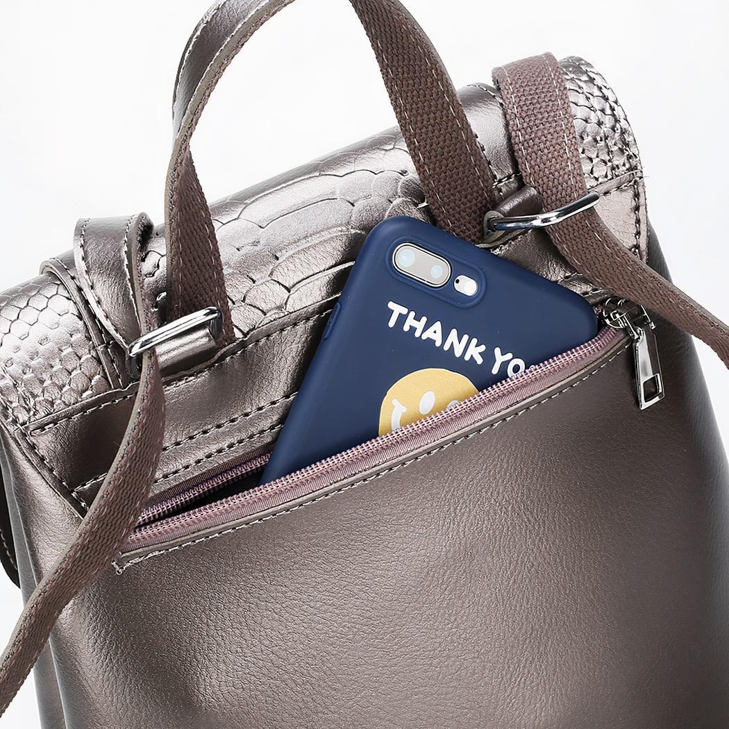 Esta mochila para mujer tiene un diseño único y elegante. Está fabricada con piel de pitón repujada de alta calidad, que ofrece una durabilidad y resistencia excepcionales. El forro interior es de tela de satén, que protege el contenido de arañazos y manchas.