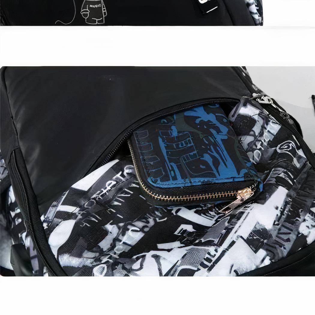 Esta mochila con estampado de graffiti es la compañera perfecta para los jóvenes urbanitas. Con su diseño único y a la moda, es perfecta tanto para los días de colegio como para las salidas con los amigos. Gracias a su pequeño bolso a juego, su hijo podrá salir con menos desorden.