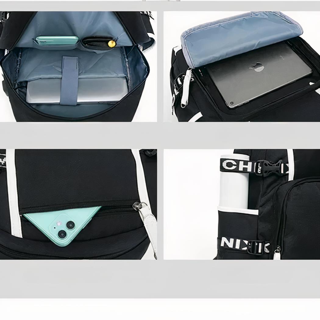 Esta mochila incorpora un cargador integrado que facilita la carga de smartphones, tabletas y otros dispositivos electrónicos. Esto la convierte en una opción ideal no sólo para la escuela, sino también para viajes y salidas.