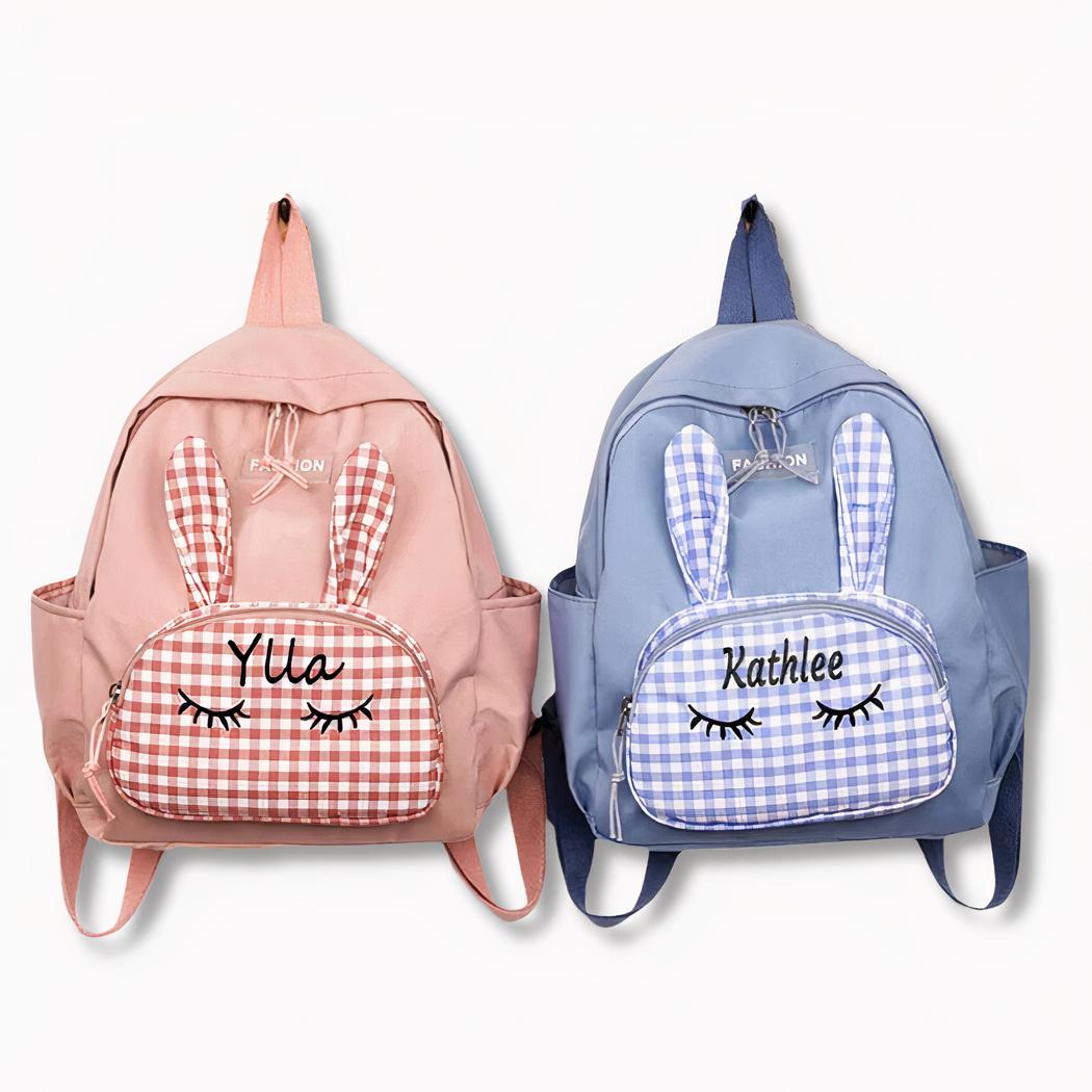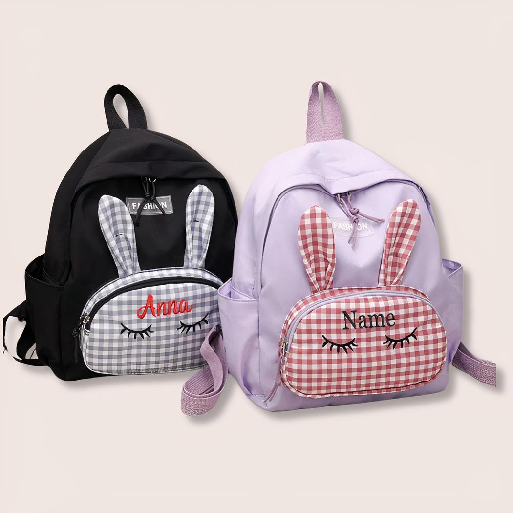 Su simpático diseño, con orejas de conejo, capta inmediatamente la atención de los más pequeños. Está disponible en azul, negro, verde, morado o rosa, y la personalización que permite añadir el nombre del niño la convierte en un accesorio distintivo y original.